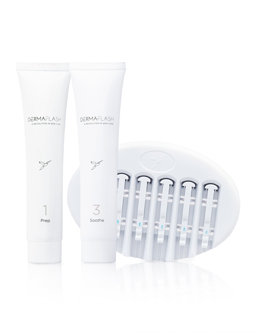 THE ESSENTIALS Contains: PREP 25 ml/.8 fl oz SOOTHE 25 ml/.8 fl oz 6 DERMAFLASH EDGES
