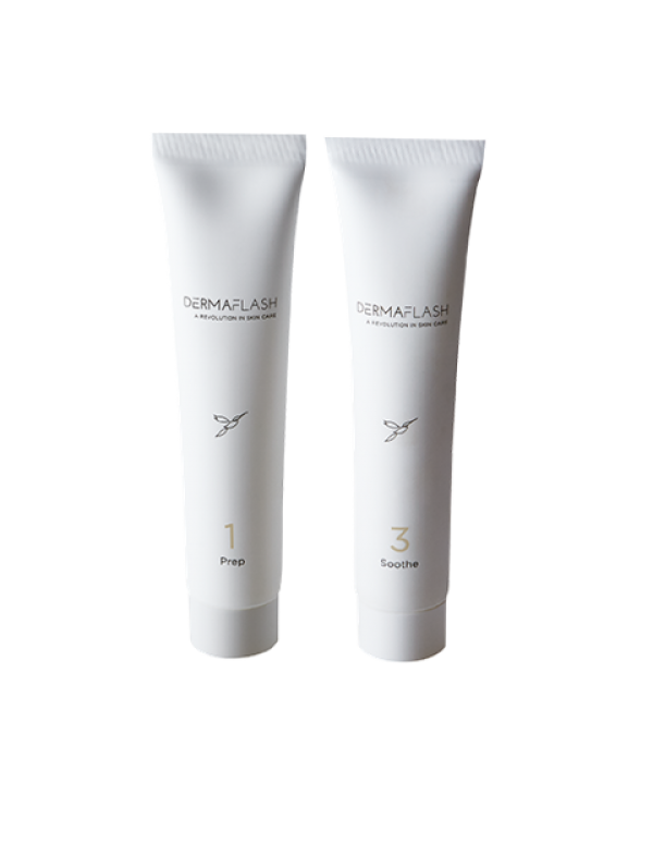 PREP is applied directly to the face to cleanse and remove surface oils before DERMAFLASH is used.